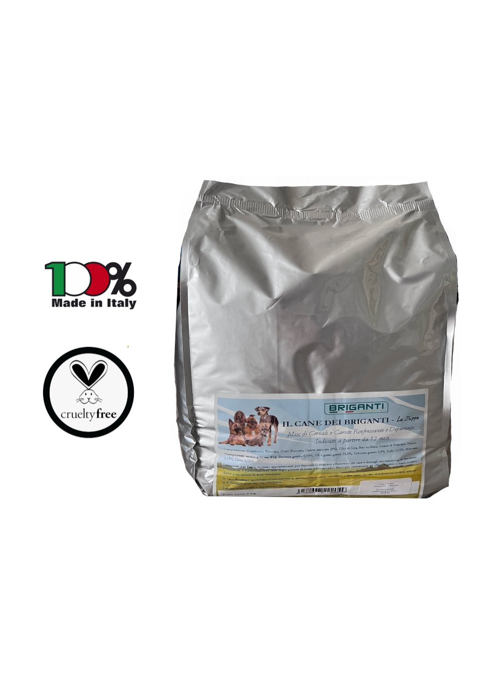 Mix di cereali cotti e laminati, riso soffiato e fiocchi di carote per cuccioli e cani adulti. La sua formulazione studiata appositamente per depurare lo stomaco e l’intestino del cane e donargli una sensazione di freschezza e benessere, è particolarmente utile dopo periodi di stress e sovraccarico fisico per contrastarne gli effetti negativi o come curativo dietro prescrizione di dieta veterinaria In caso di utilizzo quotidiano somministrare in associazione a carne, crocchette o latte caldo. In caso di indicazioni mediche attenersi al dosaggio prescritto dal veterinario. Lasciare acqua pulita a disposizione del cane. Formati 5kg, 12kg.